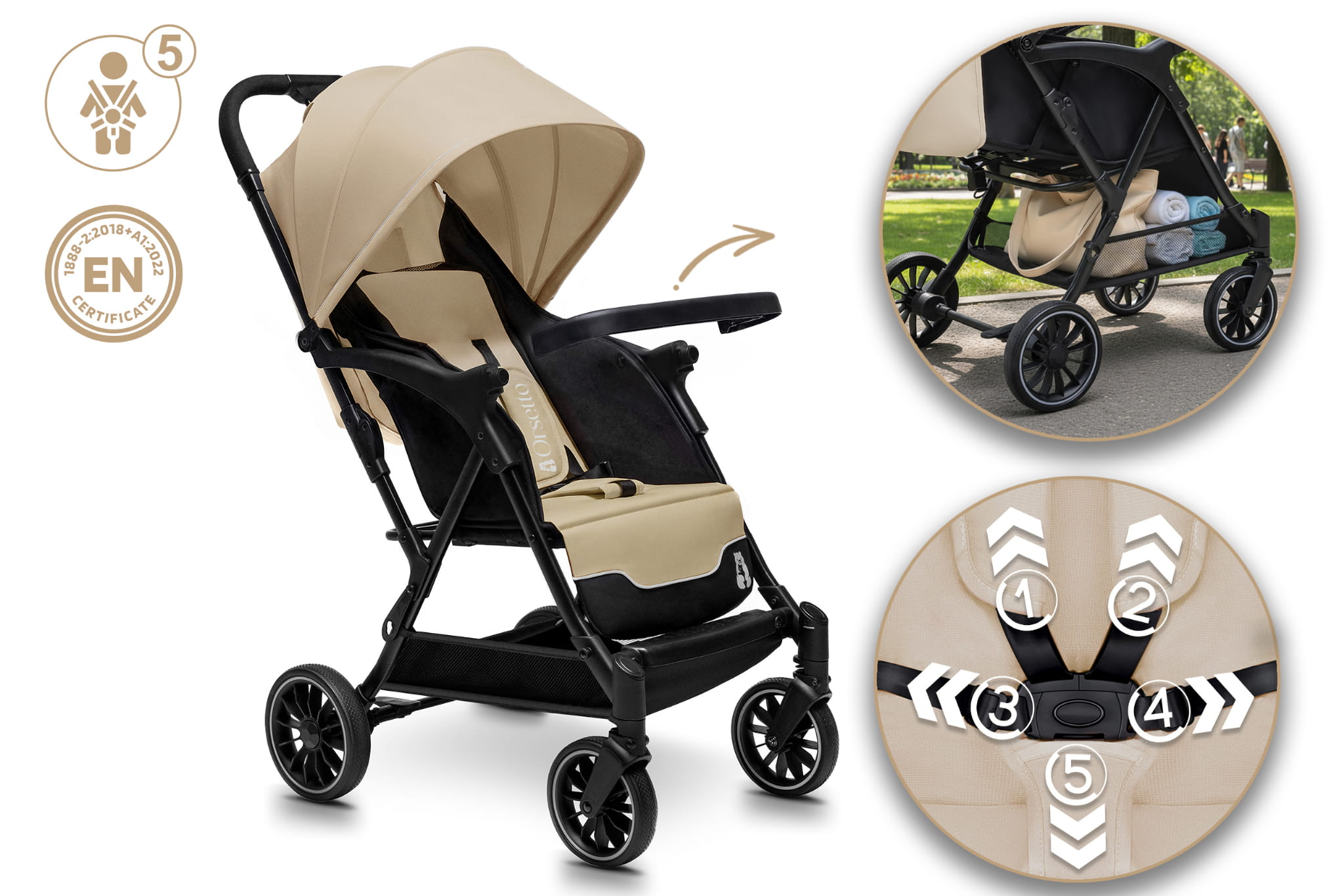 Codzienne spacery z dzieckiem to przyjemność, która może być jeszcze bardziej komfortowa i bezpieczna dzięki naszemu lekkiemu wózkowi spacerowemu marki ORSETTO. Wózek został zaprojektowany z myślą o wygodzie zarówno malucha, jak i rodziców – łączy funkcjonalność, bezpieczeństwo i nowoczesny design.