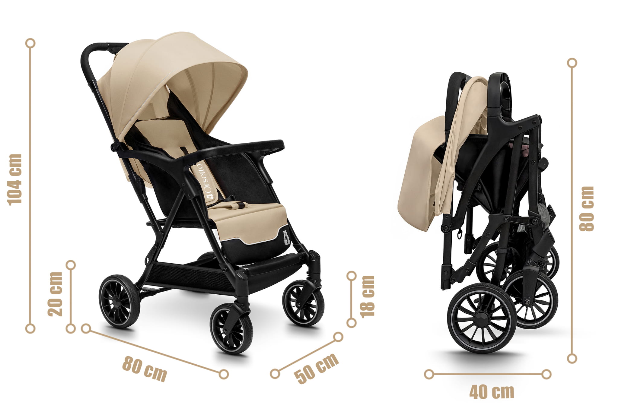 • Wymiary rozłożonego wózka: 104 x 80 x 50 cm