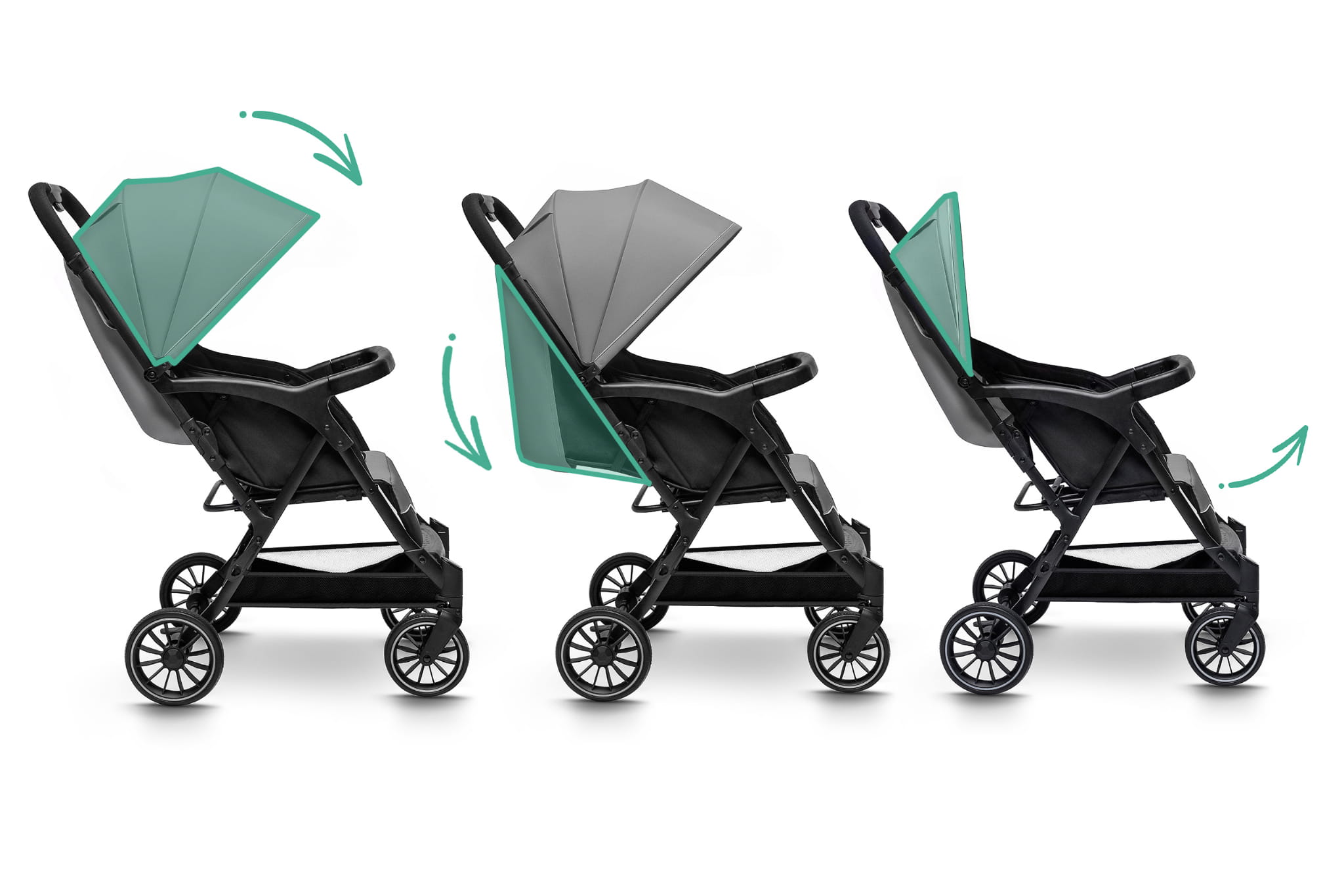 • Obszerna, regulowana budka XXL – tworzy przytulną przestrzeń i chroni przed słońcem, wiatrem czy deszczem.