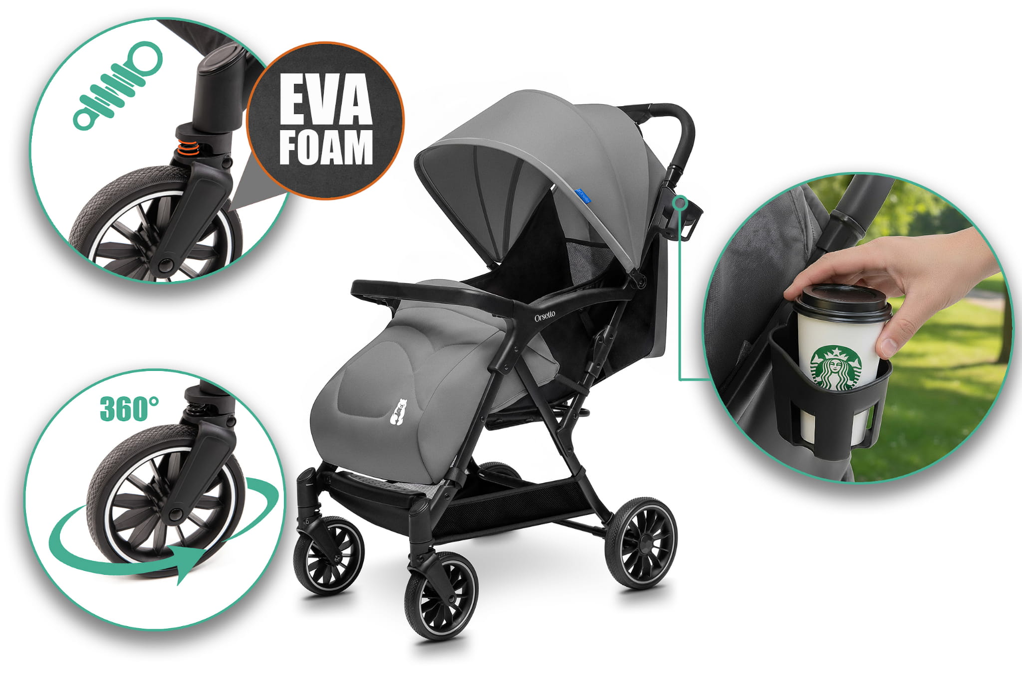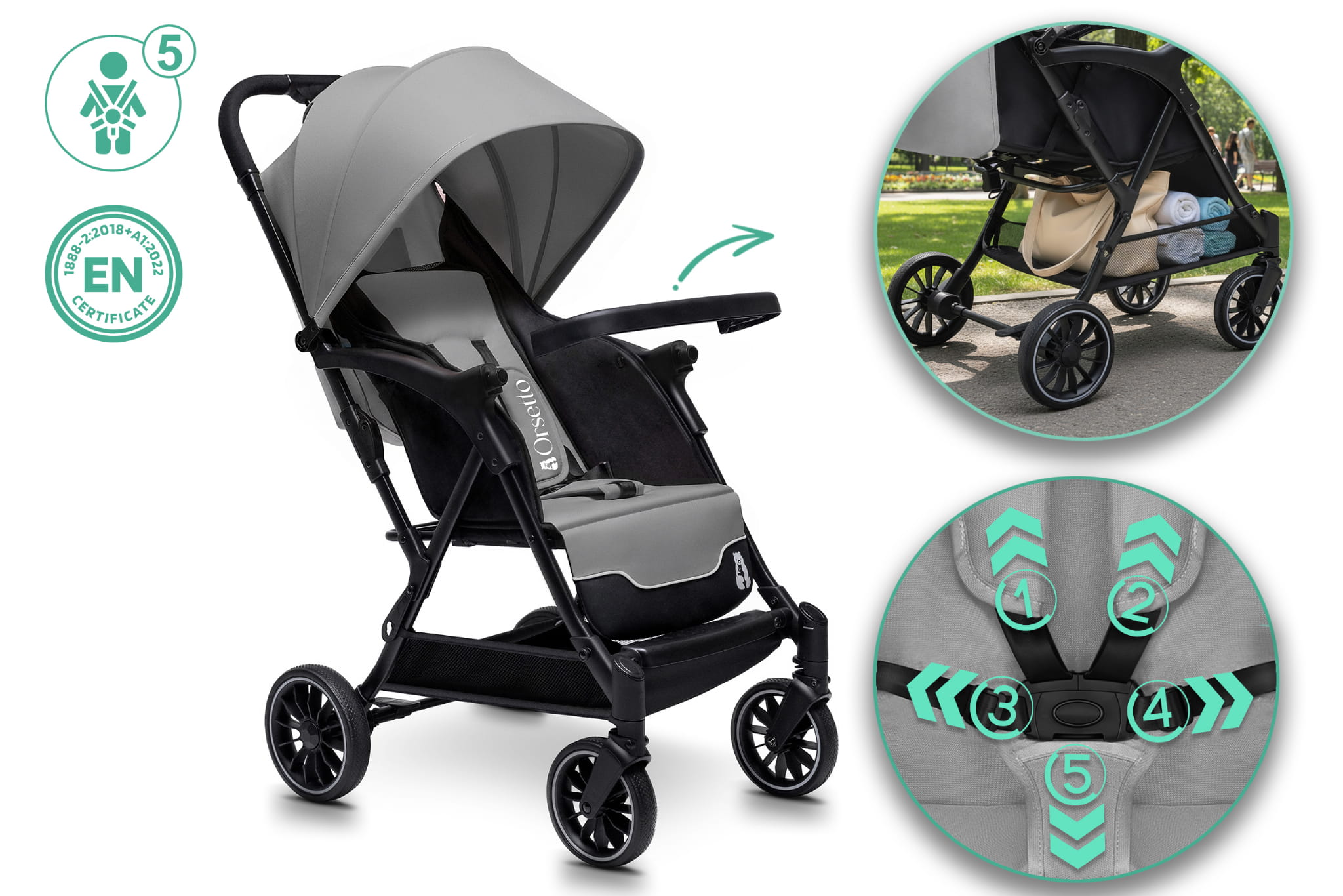 Codzienne spacery z dzieckiem to przyjemność, która może być jeszcze bardziej komfortowa i bezpieczna dzięki naszemu lekkiemu wózkowi spacerowemu marki ORSETTO. Wózek został zaprojektowany z myślą o wygodzie zarówno malucha, jak i rodziców – łączy funkcjonalność, bezpieczeństwo i nowoczesny design.